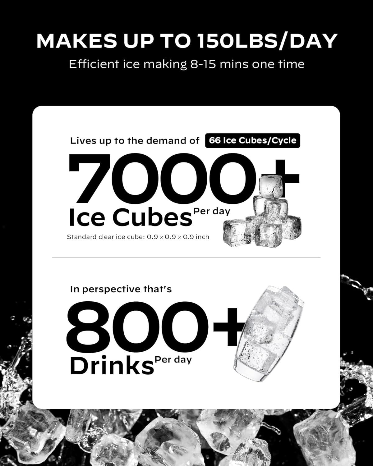 Large Ice Batches: Want to product large amounts of ice in minutes? The Silonn commercial ice maker ensures efficient ice making with only 8-15 minutes per cycle. The commercial ice machine makes 150 lbs of ice per day, enough to maintain the ice supply you need for high usage.