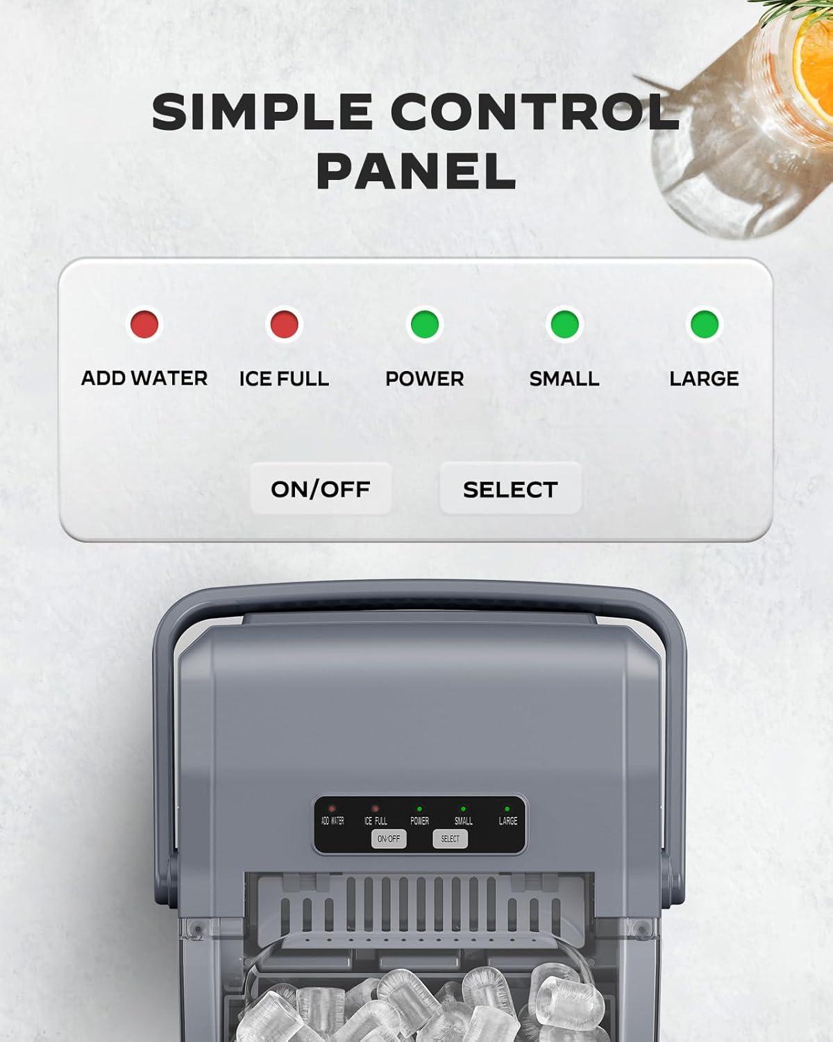 Smart & Simple Operation: Designed for everyone, this countertop ice maker features an easy-to-read control panel with intuitive button layout. Full ice and low water indicators keep you updated on ice maker machine status without the guesswork.